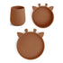 Deze set bevat een bord, een diep bord en een beker, met een motief van een schattige giraffe. Allemaal gemaakt van hoogwaardige LFGB-gecertificeerde siliconen, vrij van schadelijke chemicaliën.